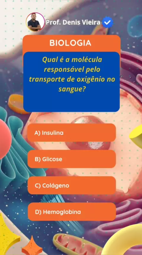 Qual é a molécula responsável pelo transporte de oxigênio no sangue? #premiokwai2024 #Halloween #signodeescorpiao #LIVESHOPJOAOKLEBER #viraliza