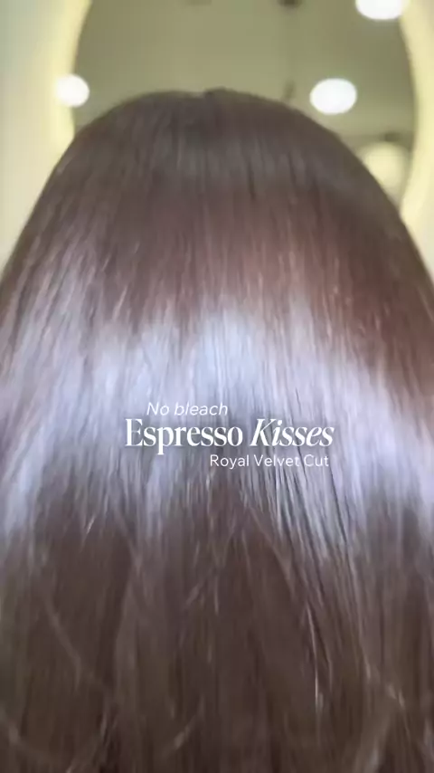 Rambut glow up tanpa ribet 🤎 Hair color Espresso Kisses tanpa bleaching, hasilnya rich, soft, dan super shiny ✨ Dipadu Royal Velvet Cut — bukan cuma gunting, tapi full premium treatment: keratin gloss mask, scalp advanced + pijat punggung, wash & blow, sampai hair shine serum 💆‍♀️ Potong rapi, rambut sehat, feel-nya royal banget 👑 #HairColorTanpaBleaching #EspressoKisses #RoyalVelvetCut #HairTreatmentPremium #SalonHairIndonesia