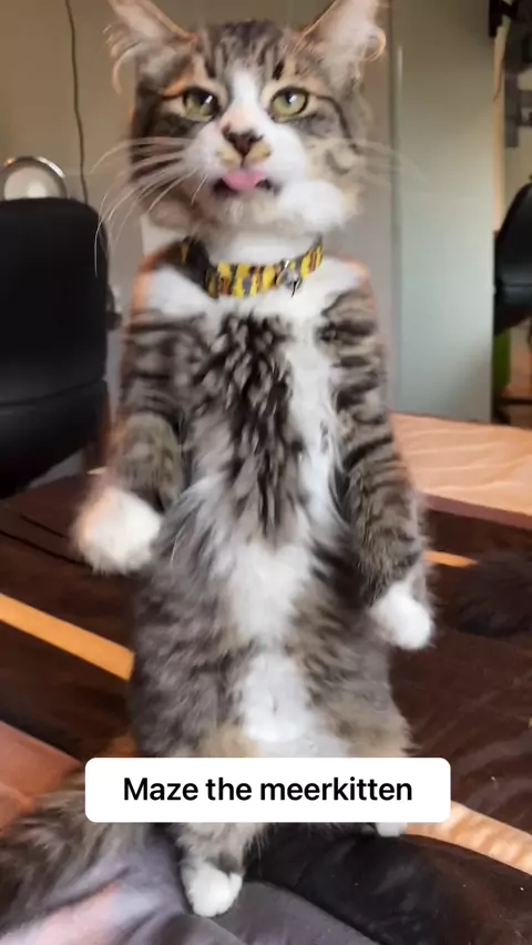thought i was adopting a kitten but got the cutest little meerkat instead 😻 #mazikeenthecat #mazethemeerkat #cat #kitten