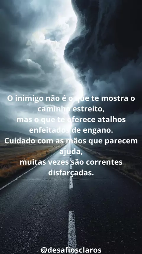 O inimigo não é o que te mostra o caminho estreito, mas o que te oferece atalhos enfeitados de engano. Cuidado com as mãos que parecem ajuda, muitas vezes são correntes disfarçadas.