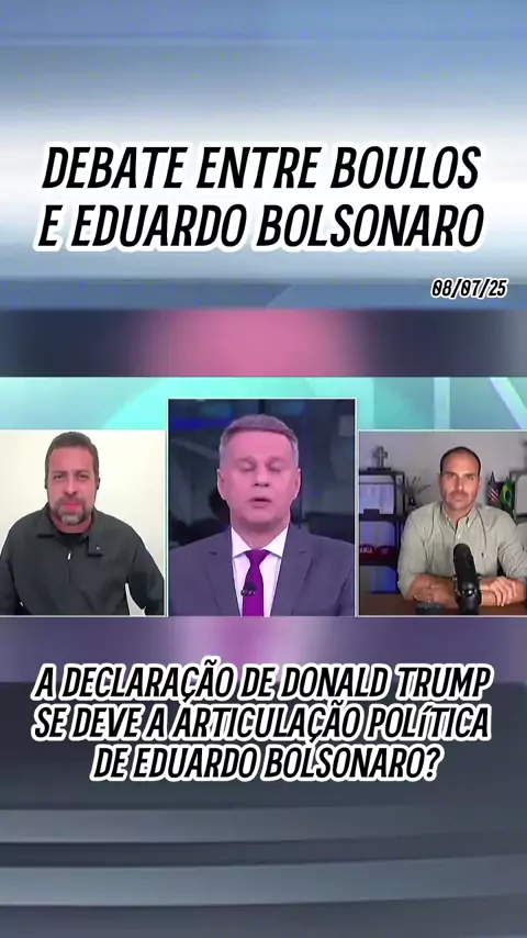 Boulos, por outro lado, criticou a interferência de Trump, afirmando que o Brasil não é "quintal dos EUA" e acusou Eduardo de conspirar contra o país #EduardoBolsonaro #Boulos #Debate #KwaiNotícias #ÚltimasNotícias