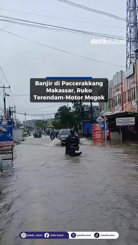 Banjir merendam Jalan Paccerakkang Makassar siang ini. Situasi itu membuat ruko terendam hingga motor mogok karena nekat menerobos banjir. Banjir merendam kawasan depan BTN Kodam III, Kelurahan Katimbang. Banjir yang menggenangi ruas jalan terpantau sepanjang 20 meter dengan ketinggian sebetis orang dewasa. Sebelumnya diberitakan, sebanyak 545 warga Makassar dilaporkan mengungsi akibat banjir. Mereka dievakuasi di enam titik lokasi yang tersebar di Kecamatan Manggala dan Biringkanaya. #banjirma...