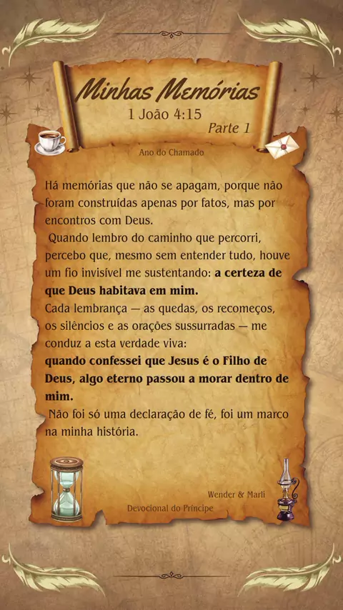 “Quando volto às minhas antigas memórias, lembro de quanto lutei tentando resolver tudo com minhas próprias forças. Hebreus 4:10 me faz recordar o dia em que aprendi a descansar em Deus, confiando que Ele já havia feito a parte dEle. Houve cansaço, pressa e ansiedade, mas também houve aprendizado, entrega e paz. Minhas memórias hoje revelam isso: o verdadeiro descanso não foi parar de caminhar, foi confiar plenamente nas obras do Senhor.”