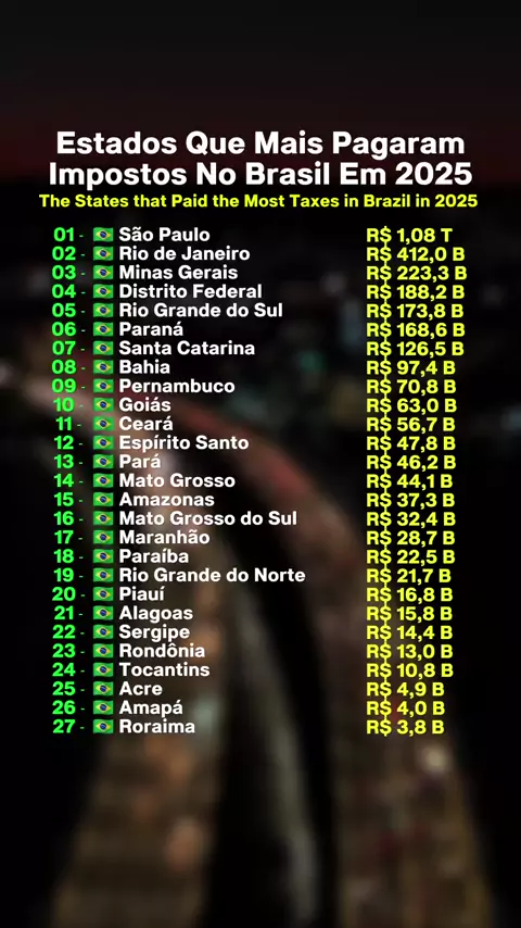 Os Estados que mais pagaram Impostos no Brasil em 2025 #estados #pagaram #imposto