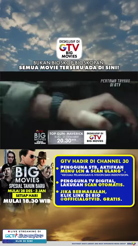 ๐Ÿ”ฅ๐ŸฅŠ SATU PUKULAN, SEMUA BERES! ๐ŸฅŠ๐Ÿ”ฅ Bukan bioskop-bioskopan, aksi paling brutal siap menggebrak layar kamu! ๐ŸŽฌ FIGHTER ๐Ÿ—“๏ธ Rabu, 31 Desember โฐ 18.30 WIB Kejaran tanpa ampun, duel jarak dekat, dan adrenalin nonstop! Jangan berkedipโ€”satu pukulan bisa jadi penentuan! ๐Ÿฟ๐Ÿ˜Ž๐Ÿ”ฅ GTV Hadir di CHANNEL 30, ikuti cara mudahnya: โ€ข Aktifkan LCN lalu scan ulang STB Kamu โ€ข Scan otomatis TV Digital #JagonyaFilm #BigMoviesGTV #GTV