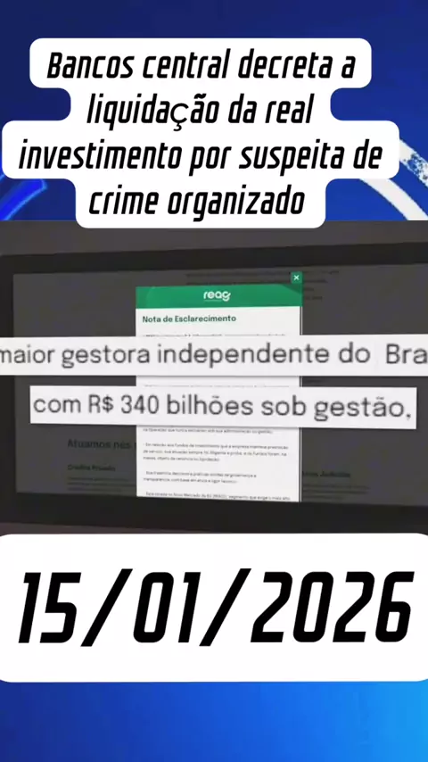 Um dia após a nova fase da Operação Compliance Zero, o Banco Central do Brasil decretou, nesta quinta-feira (15), a liquidação extrajudicial da CBSF Distribuidora de Títulos e Valores Mobiliários S.A., instituição ligada à Reag Trust Distribuidora de Títulos e Valores Mobiliários S.A., com sede em São Paulo. A medida foi tomada após investigações e faz parte das ações de fiscalização do sistema financeiro. Trecho do Jornal Nacional, da TV Globo, em 15/01/2026. #noticias# #informação# #BC# #Rea