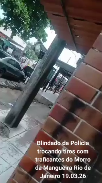 Blindado da Polícia trocando tiros com traficantes do Morro da Mangueira Rio de Janeiro 19.03.26