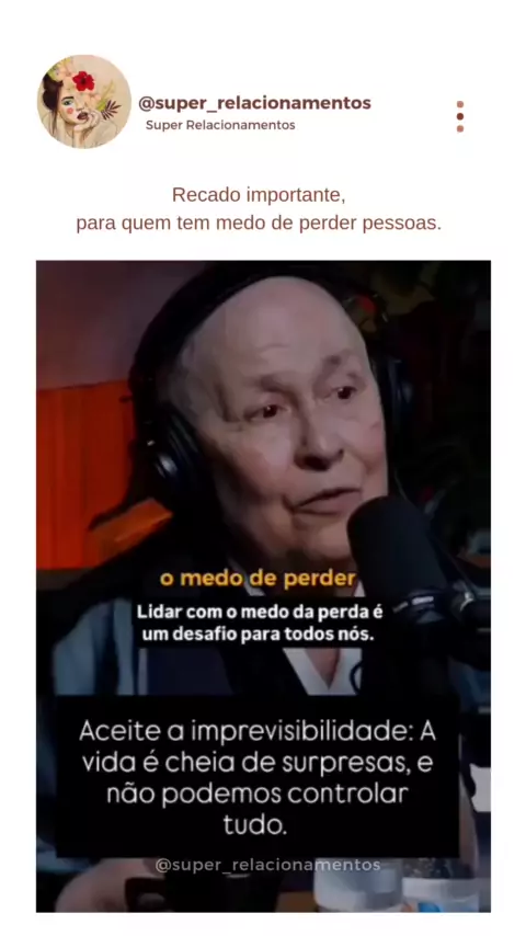 O Que Fazer Quando o Medo de Perder o Parceiro se Torna Paralisante?! Aceite a imprevisibilidade: A vida é cheia de surpresas, e não podemos controlar tudo. Aceitar que a incerteza faz parte da jornada nos permite viver mais plenamente. Cultive a resiliência: Desenvolva a capacidade de se adaptar às mudanças. A incerteza pode ser uma oportunidade para crescimento pessoal. E por fim... "Não tenha medo de perder pessoas... Tenha medo de perder a si mesmo, ao tentar agradar a todos." #kwai