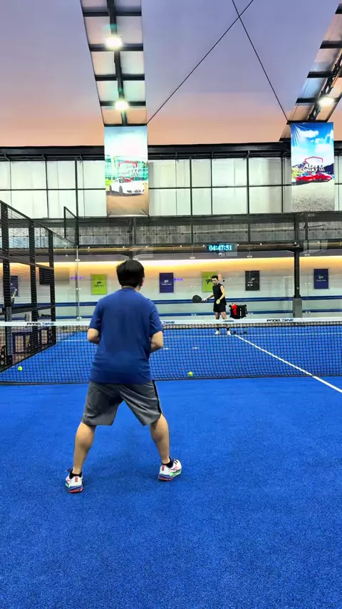 Kadang ketika kita pengen mukul kenceng ada kecenderungan narik raketnya terlalu kebelakang dan menarik raket menggunakan wrist. Hasilnya memang bolanya kenceng tapi tidak terkontrol, kalo mau kenceng dan terkontrol tarik raketnya cuma boleh samping telinga, raketnya dihadapkan ke net, jangan menggunakan wrist, dorong kencang bolanya kedepan kasih sedikit slice#coachpadeljakarta#padelcoachjakarta#padeljakarta#padelcoach
