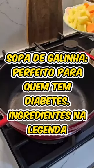 Sopa de Galinha. ingredientes: Peito de frango, batatas, cenouras, tomates, pimentão, cebola, 1 dente de alho, sal, pimenta-do-reino, páprica defumada. Tempero para o frango: 2 colheres de sopa de suco de limão, hortelã, e berinjela. Siga para mais dicas alimentares. #dietafitness #saude #vidasaudavel #dieta #diabetestipo2