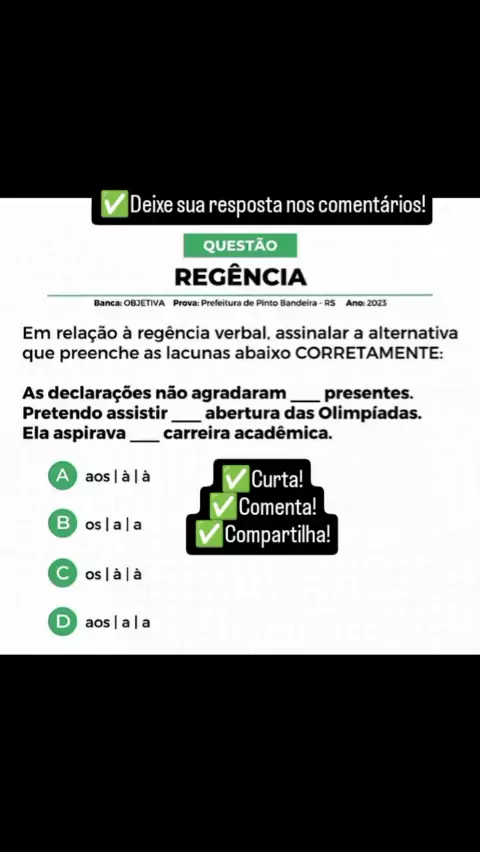 ✅️Deixe sua resposta nos comentários! ✅️Curta! ✅️Comenta! ✅️Compartilha! #DicasdePortugues