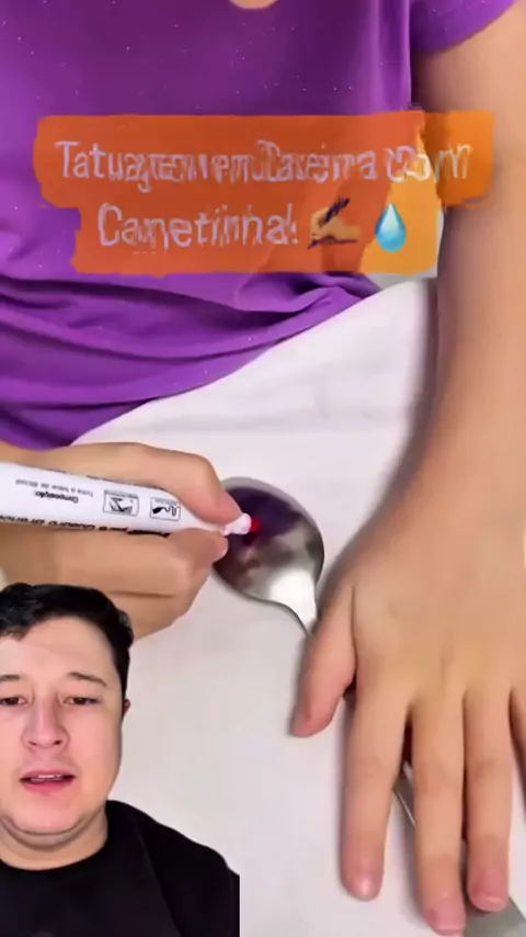 Pegue uma colher, desenhe com canetinha, coloque na água e veja o desenho se soltar. Depois, use um papel para transformar em uma tatuagem super divertida! Gostou? Comenta aqui, marca quem precisa ver isso e me segue para mais dicas! #TatuagemCaseira #DIYKids #DicaCriativa #DiversãoEmCasa #AtividadeInfantil