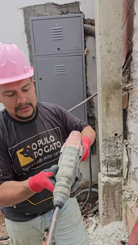 Como você solucionaria este problema??? Tive a ideia de cortar o espaço para caixinha de tomada e interruptores nova em baixo e tentar furar com uma broca longa inclinada para tentar passar os cabos por trás do porcelanato. E não é que deu certo⁉️ #pedreiro #obra #porcelanato #revestimento #construcaocivil @