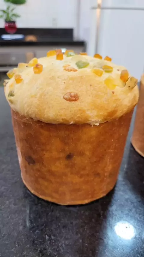 Panetone frutado sem segredo,não deixe seu Natal com 🎄🎅 passar em branco faça esse panetone e me marque @dicaskasandra 🎄Ingredientes 200ml de água 01 sache de fermento 10g 05 colheres de açúcar 02 ovos raspinha de limão 07 colheres de óleo 01 colher de essencia de panetone 01 colhersinha de café de sal 500g de Farinha de Trigo frutas cristalizadas a gosto Modo de Preparo passo a passo no vídeo formas de 400g #panetone #foryoupaodaka #paoparainiciantes #panificação #kasandradicas