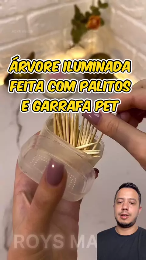 Árvore iluminada feita com palitos e garrafa PET Palitos na bolinha, base de PET em triângulo, furos, encaixes e LED dentro. O resultado vira uma árvore linda, leve e super criativa pra decorar! #dicas #dicastechcesar #decoração #criatividade #natal