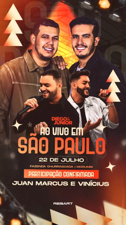Primeira participação confirmada! Nossos parceiros #JuanMarcuseVinicius vão chegar com tudo pra gravação do nosso primeiro DVD! Anota aí, dia 22 de Julho, na #FazendaChurrascada 🔥 Vem aí: “Diego & Junior ao vivo em São Paulo”. #DiegoeJunior #SaoPaulo #Sertanejo