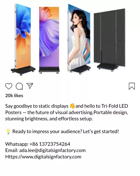 Did you see a tri-fold led poster like this? #trifoldledposter #LEDPoster #LEDPosterscreen #ledposterdisplayprice #leddigitalsignage