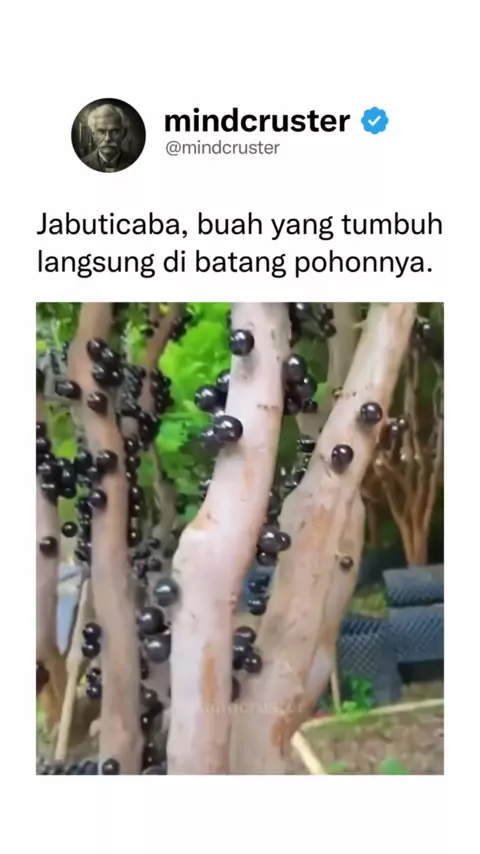 Jabuticaba (Plinia cauliflora) adalah pohon anggur asal Brasil yang dikenal dengan sebutan Anggur Brazil. πŸ‡ Yang membuatnya unik, buah anggur dari pohon Jabuticaba ini tumbuh langsung dari kulit batangnya. Buahnya berbentuk bulat seperti anggur, berwarna hitam pekat, dan tumbuh menggerombol. πŸŽ‹ Di habitat alaminya, pohon ini bisa tumbuh setinggi 15 meter dan berbuah sebanyak 5-6 kali dalam setahun. Credits: RampChurch / Reddit Ikuti @mindcruster untuk konten menarik tiap harinya! #jabuticab...