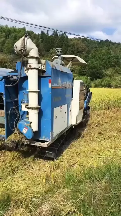 O arroz maduro está cheio, e o ceifeiro parece cantar uma canção feliz e colher o arroz feliz.