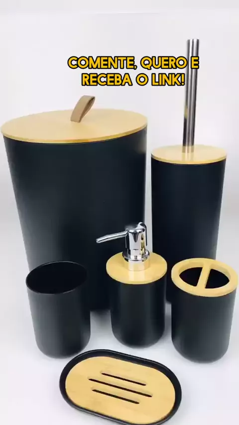 Dê uma olhada em Kit de Banheiro Completo com 6,4 ou 2 Peças - Lixeira com Tampa Basculante Bambu para Lavabo. Compre na Shopee agora! ID do produto: ARF-UWU-CNK #lixeira