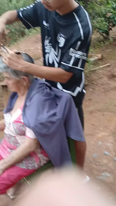 Meu filho cortando cabelo da minha sogra em Minas Gerais 🇧🇷