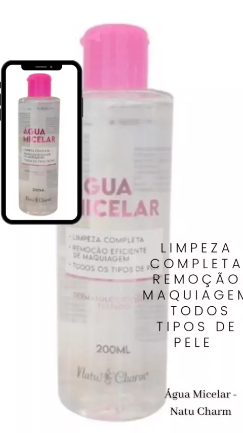 Água Micelar Água Micelar 200ml Natu Charm A Água Micelar Natu Charm é indicada para quem deseja uma pele muito mais bonita e cuidada. Em uma única fórmula, você encontra vários benefícios, como: efeito purificante, limpeza garantida, hidratação na medida certa e suavização da sua pele, além de remover a maquiagem do dia a dia. link do produto https://shope.ee/2pv7sv8UJU