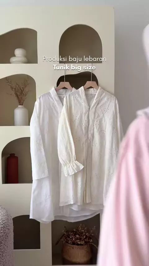 Menurut kalian mending lengan lurus atau kerut? Udah berminggu2 galauin ini😭😆 Tunik lebaran ini aku bikin dari katun bordir biar adem dan big size friendly #plussize #bajulebaran #lebaran2026