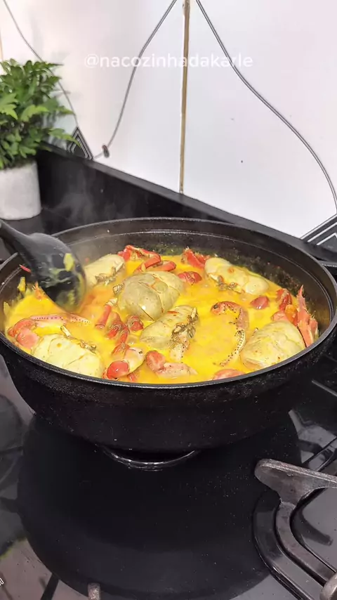 CARANGUEJADA NO LEITE DE COCO INGREDIENTES ⤵️ Para cozinhar o caranguejo: • 6 caranguejos médios • 3 colheres de vinagre • 2 colheres de óleo • 1 colher de sal • Sal a gosto Para o molho do caranguejo: • 1 fio bem generoso de azeite de dendê • 1 cebola • 1 tomate • ¼ de pimentão verde pequeno • 1 pimentinha de cheiro grande • 2 dentes de alho • 1 xícara e meia de leite • 1 xícara e meia de leite de coco • 1 xícara e meia de água • 1 colher de maizena • Sal a gosto • Corante