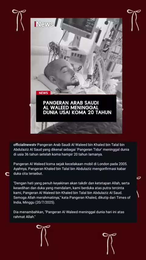 innalillahi wainna ilahiraojiun, pangeran arab saudi meninggal dunia setelah koma selama 20 tahun #pangeranarab #koma #innalillahiwainnalillahirajiun #berduka #