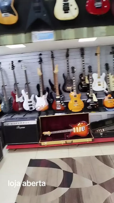 loja aberta, guitarra baixo e violão
