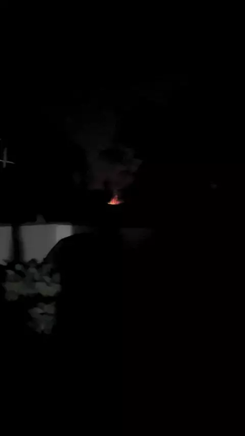 Ele está dançando em volta do fogo.