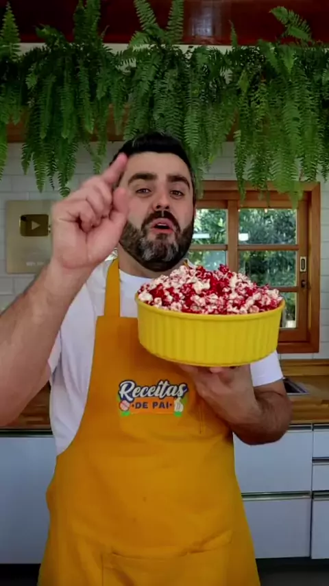 PIPOCA VERMELHA DE PIPOQUEIRO Ingredientes: 1/2 xícara de milho de pipoca 1/2 xícara de açúcar 1/4 de xícara de óleo 1/4 de xícara de água 1 colher de café de corante vermelho #receitas #culinaria