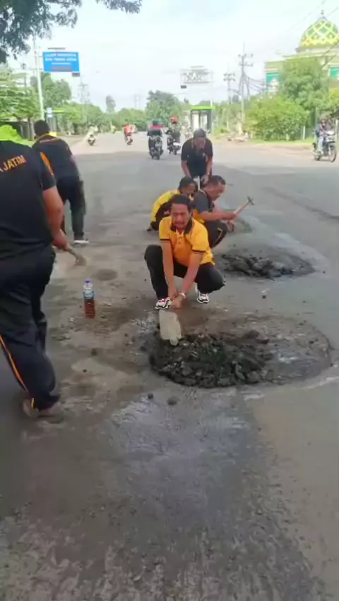 PENAMBALAN ASPAL#polisipenolongku#sepripimpoldajatim#humaspoldajatim#poskopresisi#polsekbalongbendo