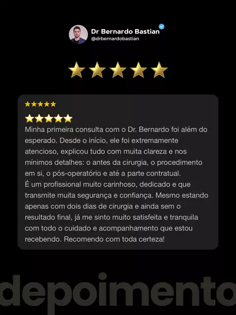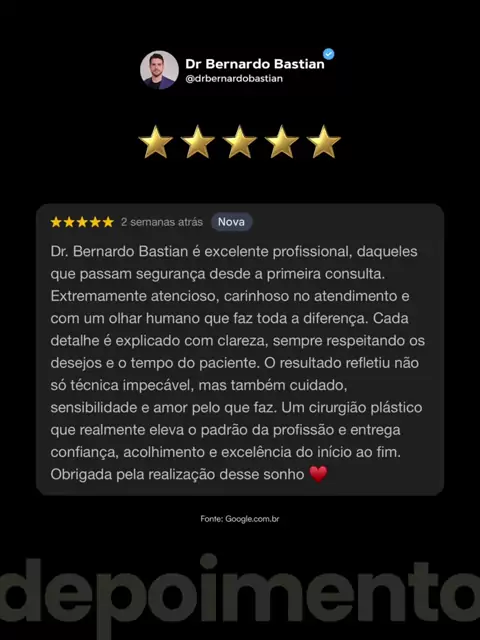 Gratidão por esse depoimento tão completo e verdadeiro. 🤍 Na minha consulta, você não sai com “achismos”. Eu explico, com detalhes: • o planejamento antes da cirurgia (avaliação, exames, alinhamento de expectativas) • como será o procedimento (técnica indicada para o seu caso e por quê) • como funciona o pós-operatório (rotina, cuidados, sinais de alerta e etapas de recuperação) • e até a parte contratual, porque transparência também é cuidado. #drbernardobastian #cirurgiaplastica