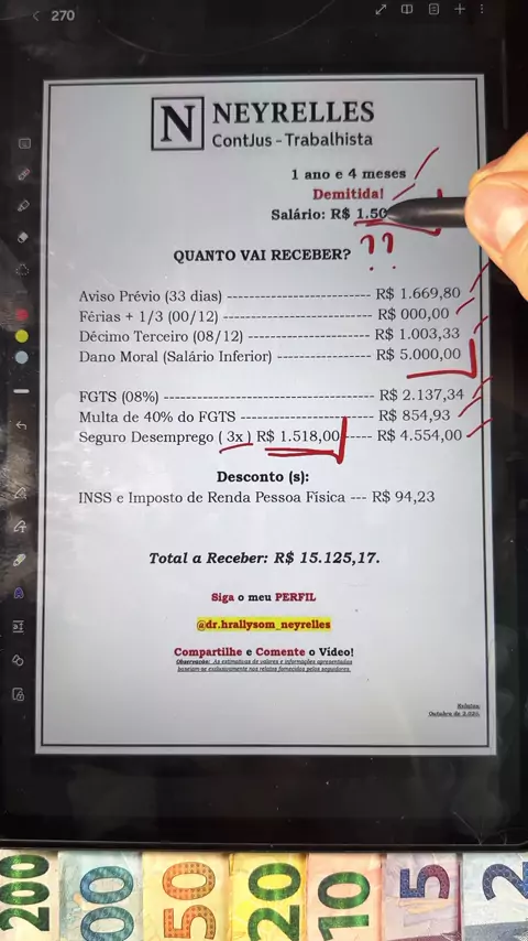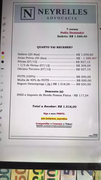 Trabalhou mais de 3 anos com um salário mínimo!!! Recebendo apenas R$ 1.518,00. #salariominimo #1518 #3anos #rescisaodetrabalho #calculotrabalhista