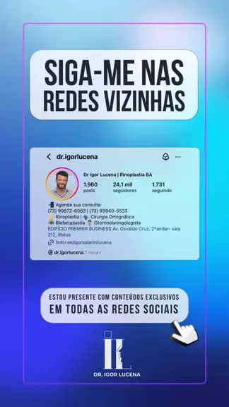 Rinoplastia: transformação com segurança e precisão ✨👃 ▪️Venha me visitar: 📍EDIFÍCIO PREMIER BUSINESS Av. Osvaldo Cruz, 2°andar- sala 212. 📳 Telefone(s) para contato: (73) 99872-6063 / (73) 99940-5533 Atendimentos de: ✅ Rinoplastia ✅ Plástica facial ✅ Cirurgia Ortognática ✅ Prótese Facial ✅ Otorrinolaringologia ✅ Tratamentos estéticos Dr Igor Lucena Médico otorrinolaringologista CRM: 29251 RQE: 21853 #drigorlucena #ilheus #itabuna #uruçuca #itacaré