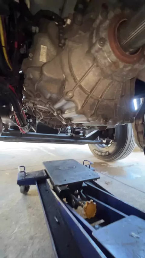 Transmissão pesa até 700kg. Se cair… suas canelas não seguram. ⚠️ Sempre use cinta. #mecanica #oficina #diesel #piterbilt