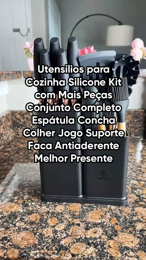 Utensilios para Cozinha Silicone Kit com Mais Peças Conjunto Completo Espátula Concha Colher Jogo Suporte Faca Antiaderente Melhor Presente