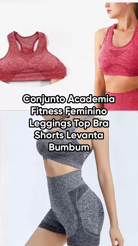 Conjunto Academia Fitness Feminino Leggings Top Bra Shorts Levanta Bumbum