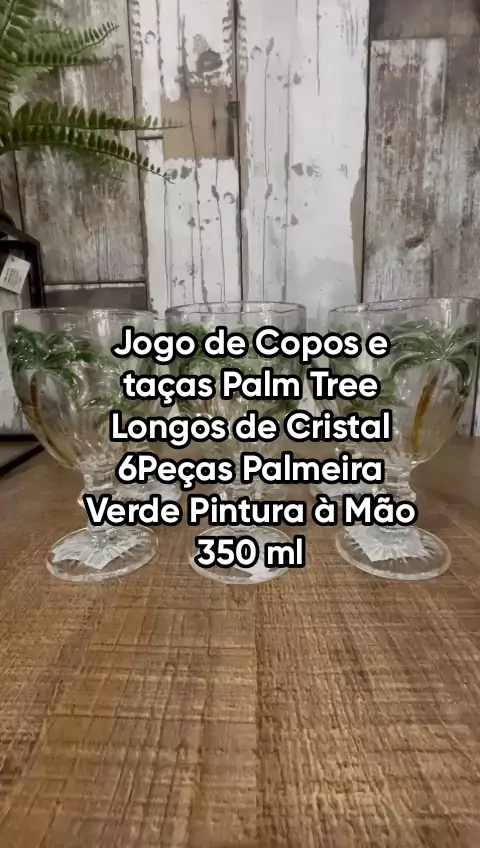 Jogo de Copos e taças Palm Tree Longos de Cristal 6 Peças Palmeira Verde Pintura à Mão 350 ml