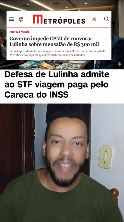 Lulinha admite que viagem e hospedagem em hotel foram pagas pelo careca do INSS #lulinha #cpmi #esquerda #carecadoinss #stf
