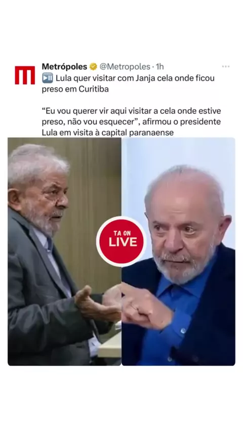 Lula quer visitar com Janja cela onde ficou preso em Curitiba “Eu vou querer vir aqui visitar a cela onde estive preso, não vou esquecer”, afirmou o presidente Lula em visita à capital paranaense #lula #noticias #viral #brasil🇧🇷