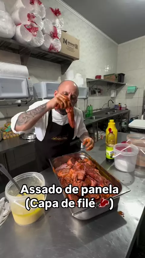 Receita fácil . . Ingredientes. Usei . . 15 kg de capa de filé 🥩 Sal Alho Coloral Caldo de carne 🥩 Mostarda Shoyu 2 litros de óleo 2 litros de água Cebola e pimentão 🫑. . #trend #restaurantes #explorar #delivery #receitas #clientes #donadecasa