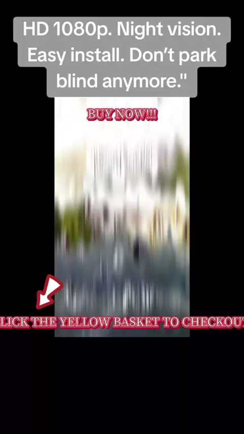 "This $25 rear view camera saved me from backing into a pole..." On-Screen Text / Hook: "HD 1080p. Night vision. Easy install. Don’t park blind anymore." #fyp #viral #goals