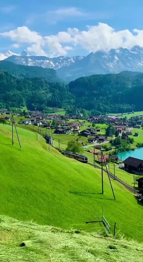 Suíça 🇨🇭 Na estação quente, você pode nadar aqui, e nas outras estações você pode desfrutar da natureza e da magnanimidade da paisagem. Os arredores do lago são famosos pelo ar mais limpo e claro, florestas verdes magníficas e prados inclinados, picos de montanhas com calotes de neve e um lago. O lago é famoso pela pesca. Encaminhe e se inscreva em CANAL @NossoPlaneta