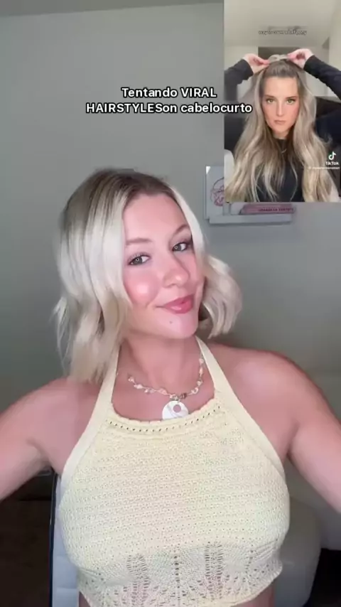 Tentando este viral half up hair hack no meu cabelo curto!! Inspo # hairhack # viralhairstyle # hairstyleideas # shorthairstyles # bobhairstyles
