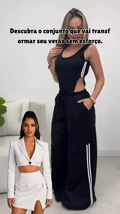 O conjunto perfeito para arrasar no verão sem abrir mão do conforto #ModaFeminina #LookDeVerão #EstiloComConforto #Pantalona #BodyCavado