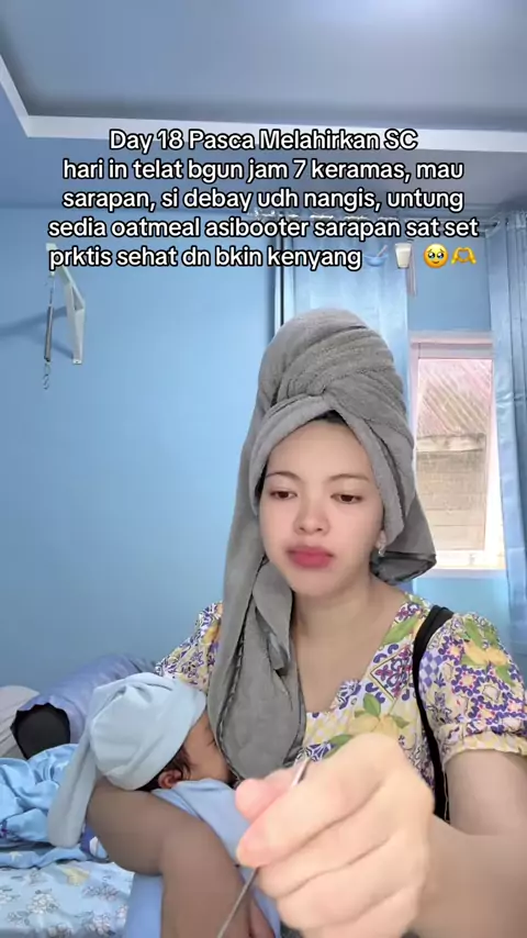 hari ini emak telat bgun krn pagi td bgunin paksu sahur tidur jam 5 kebblasan deh bngun jm 7🤣 udh bkin sarapan nasi gk smpat mkan, si debay udah ngereog, utg ada oatmel safiya, msih bisa sarapan smbil nyusuin dede😆🥣#melahirkan #pascamelahirkan #asiboostermomuung #momuungboosterasi #oatmeal