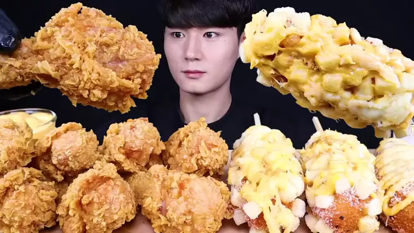 #corndog #mukbang #cheese #friedchicken #chiken #asmr #cheesecorndog