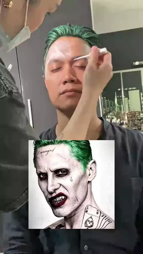Highest on demand as male character makeup. Ini diaa proses makeup “THE JOKER”🃏 This is my work last year, yang baru dipost skg. Udah pernah post versi Harley Quinnya, tinggal scroll ke bawah lagi aja yaah buat yang penasaran 😆👇🏻 IG : bycicialis / makeupbycicialis : felicia.permata PL & booking appointment only by WA chat. Click link di bio! 😘#makeupkelapagading#makeupcharacter#makeupjoker#muakelapagading#muahalloween